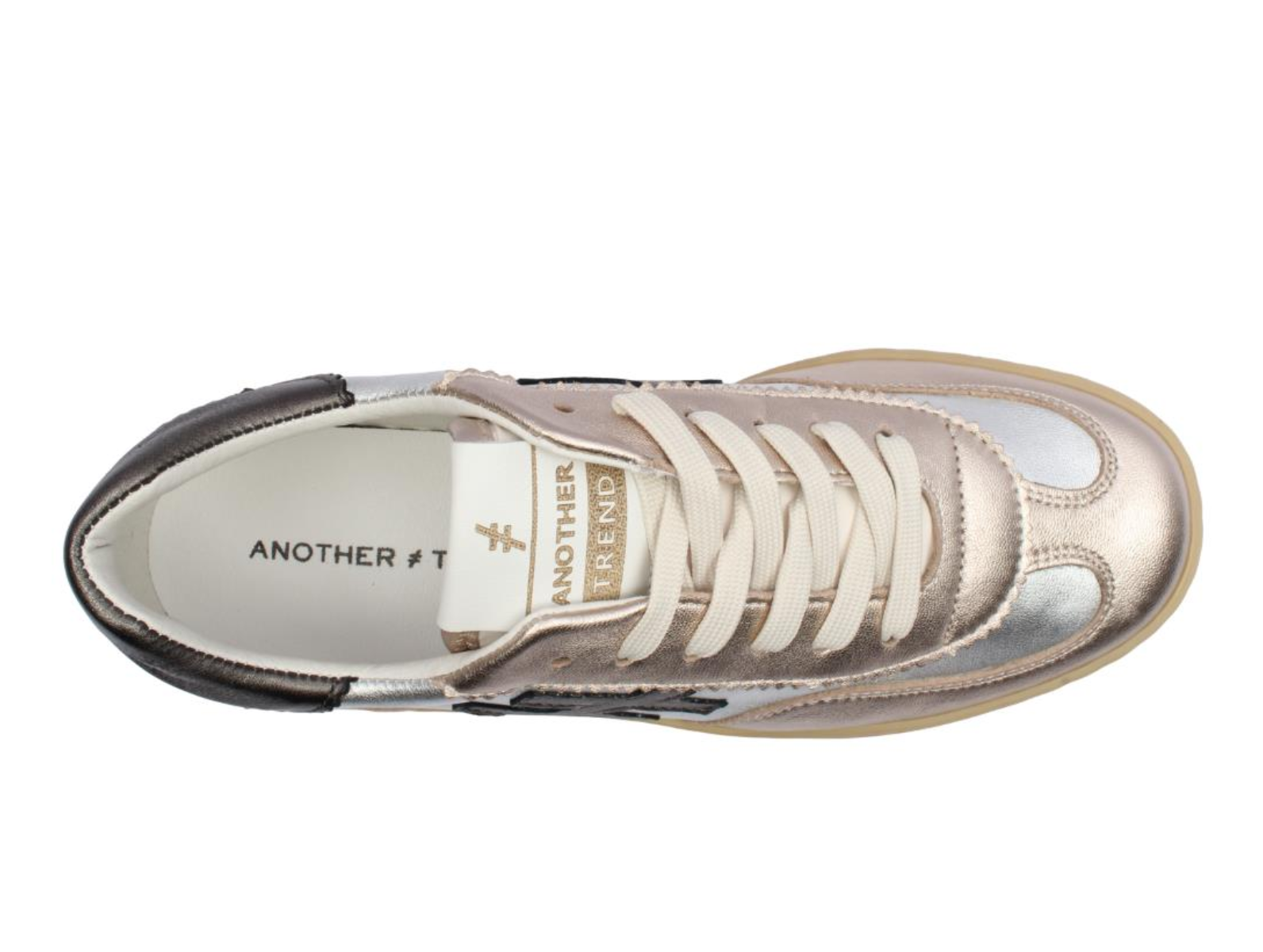 Another Trend A032-61E5 in Mixed Metal is a stylish and comfortable ladies’ trainer perfect for everyday wear. Another Trend A032-61E5 in Mixed Metal features a sleek metallic design and removable insoles, available at Walsh Brothers Shoes, Tralee.