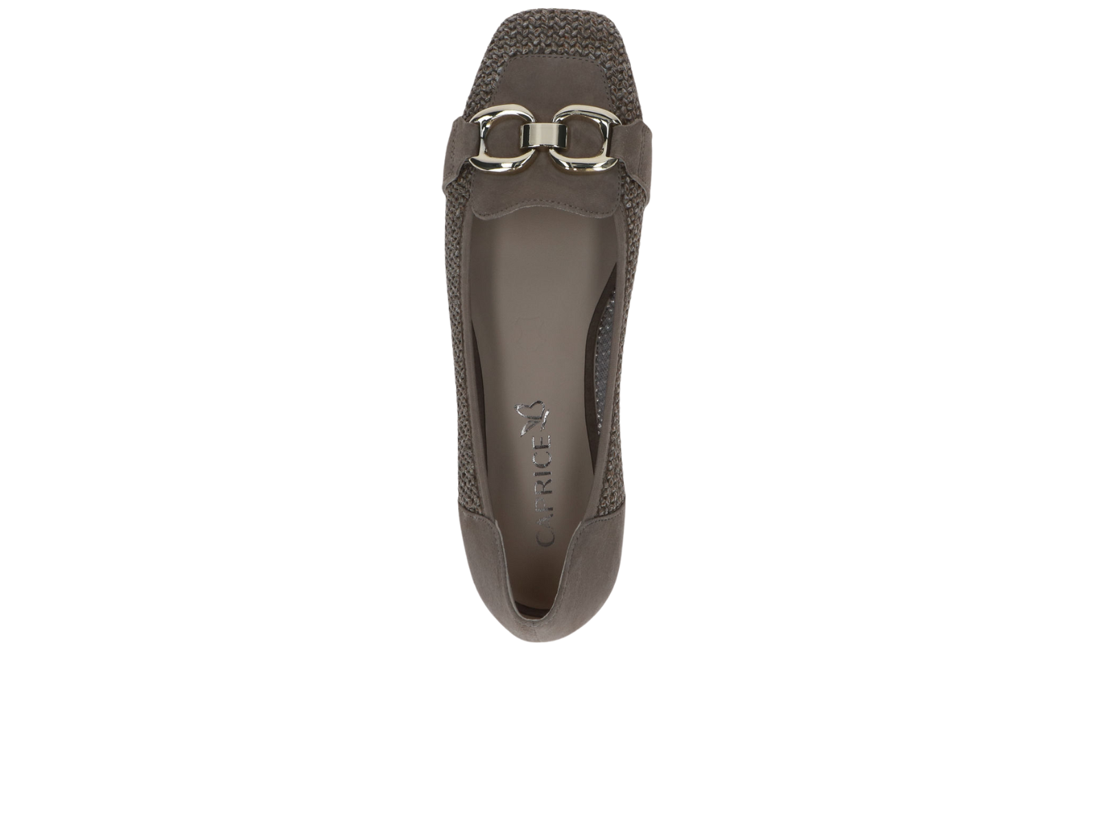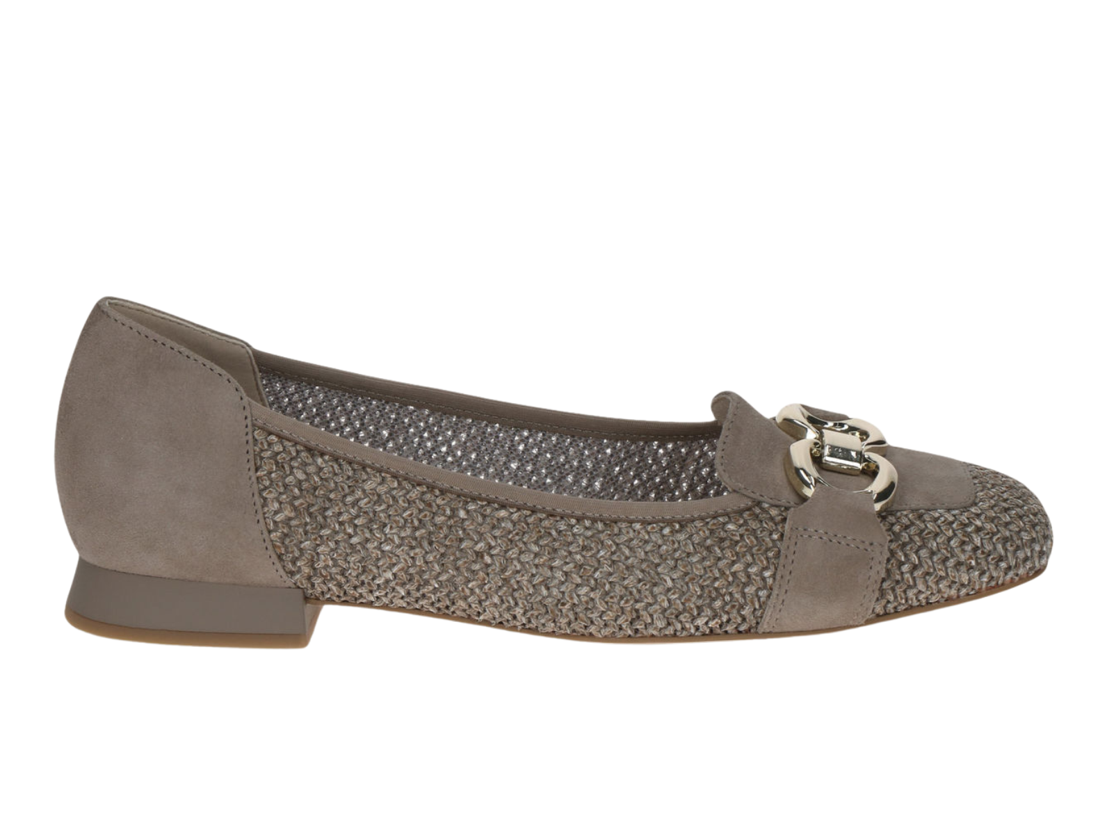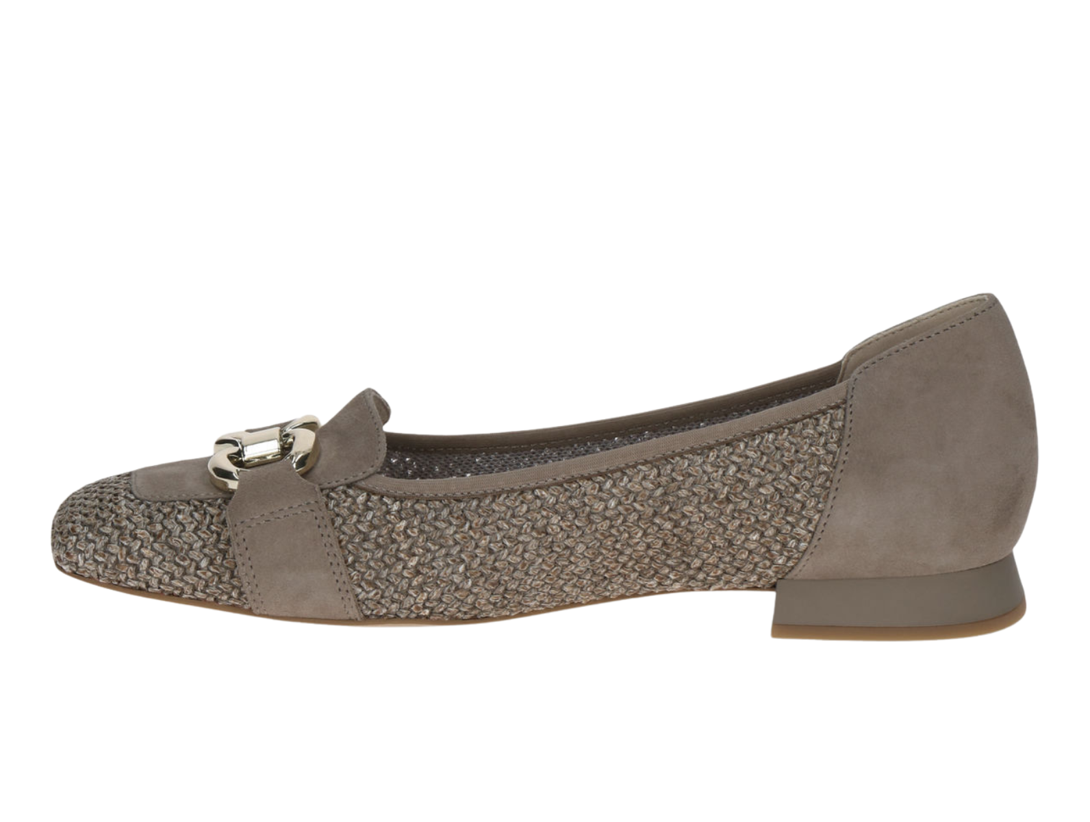 The Caprice 9-24201-46 326 in Earth is an elegant ladies’ slip-on shoe designed for effortless everyday style. The Caprice 9-24201-46 326 in Earth features a soft neutral woven-look upper with smooth panel contrast and decorative hardware trim, offering classic appeal and comfort, available at Walsh Brothers Shoes, Tralee.