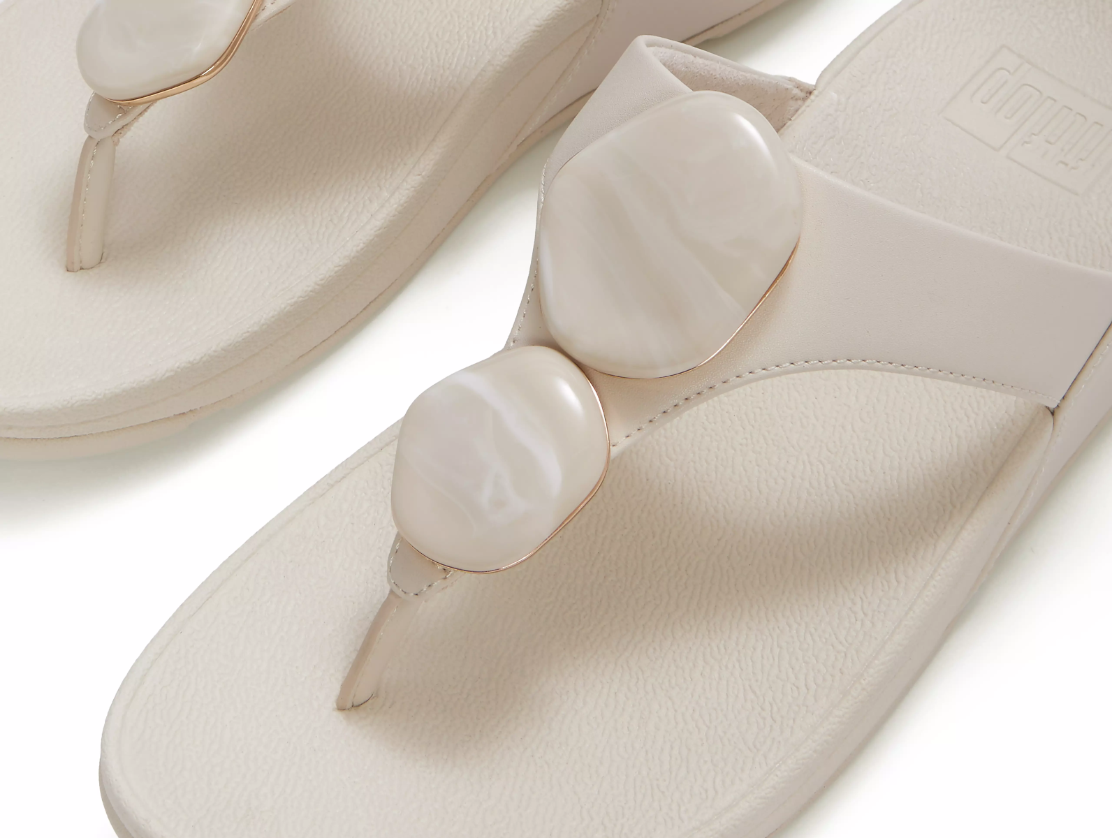 Add a striking touch of elegance to your summer collection with the FitFlop Lulu Marbled-Stone in Beige, a beautiful reimagining of a classic silhouette. Adorned with glossy, marble-effect stones set against a timeless triangular vamp, the FitFlop Lulu Marbled-Stone in Beige effortlessly combines a high-fashion aesthetic with the world-class ergonomic support you expect from FitFlop.