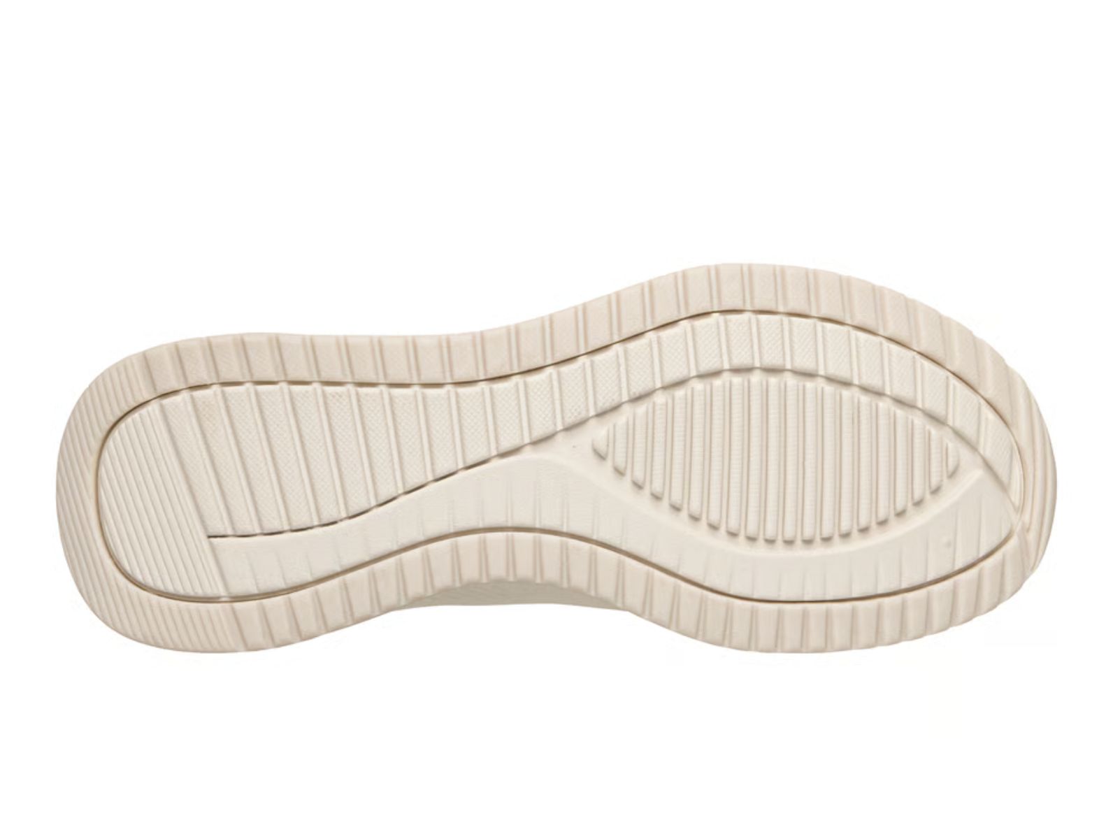 Upper: Breathable engineered knit and synthetic upper in a clean off-white finish, featuring fixed stretch laces for a stylish "No Tie Fit."