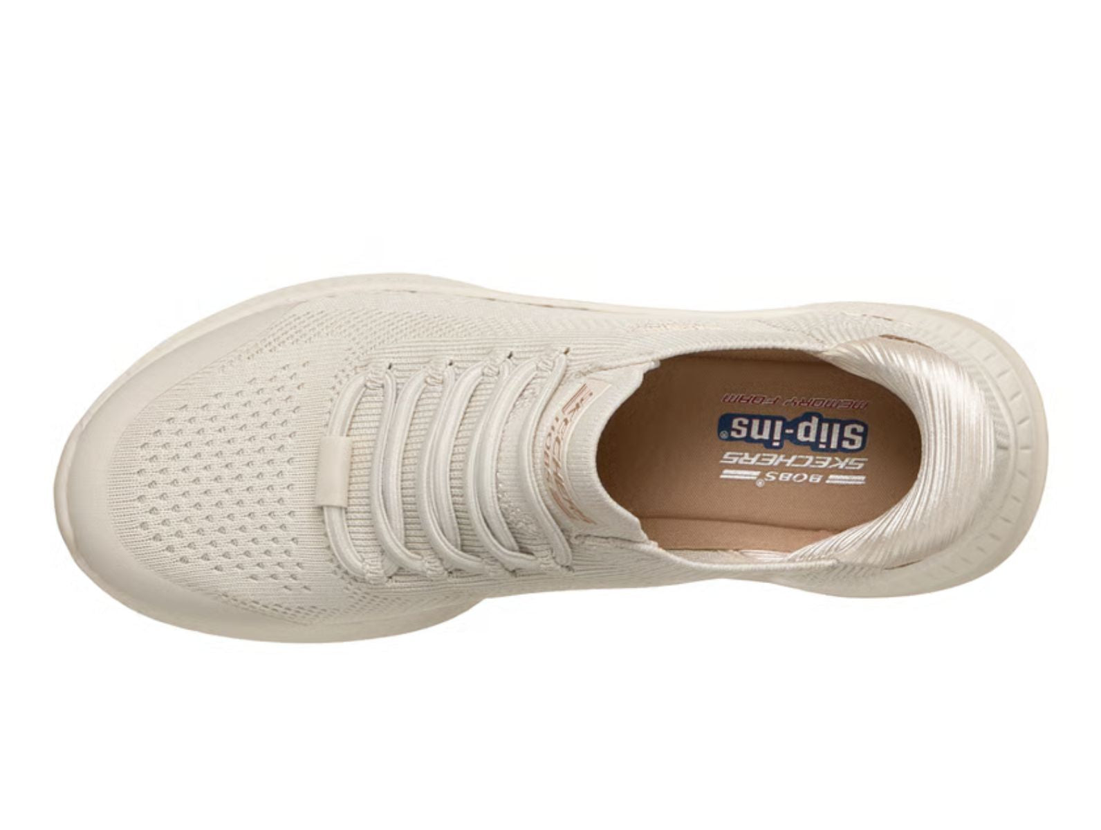 Enhance your athletic collection with the Skechers Slip-ins: BOBS Squad 4 - Dire Step in Off White, a sporty trainer that combines high-performance features with the ultimate in hands-free convenience. Featuring an engineered knit upper and a sock-like fit, this lightweight trainer is designed to provide a secure and cushioned experience, making it perfect for both active sessions and busy days on the go.
