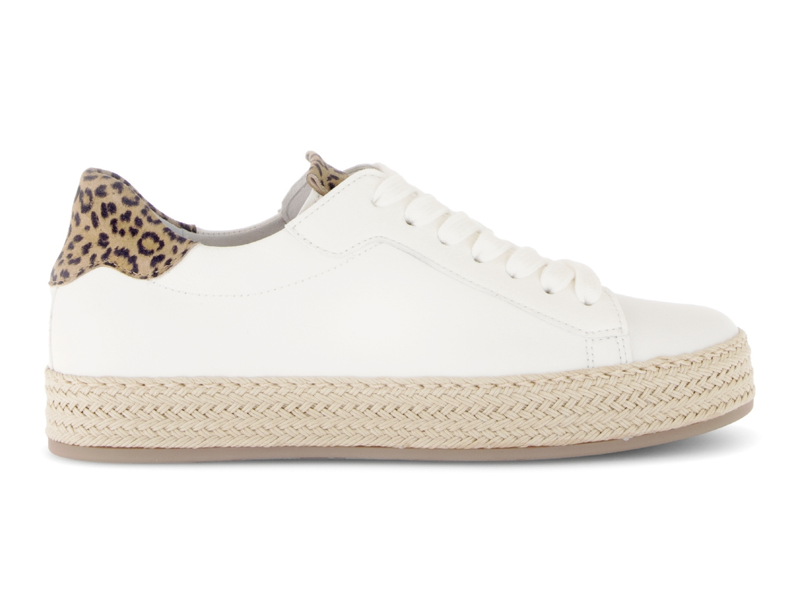 The Gabor 83.270.22 Voice in Natural with leopard print detail is a stylish everyday sneaker combining neutral tones with subtle on-trend flair. Designed for comfort and versatility, the Gabor 83.270.22 Voice in Natural with leopard print detail features a low-profile silhouette, removable insoles and a supportive platform sole for all-day wear.
