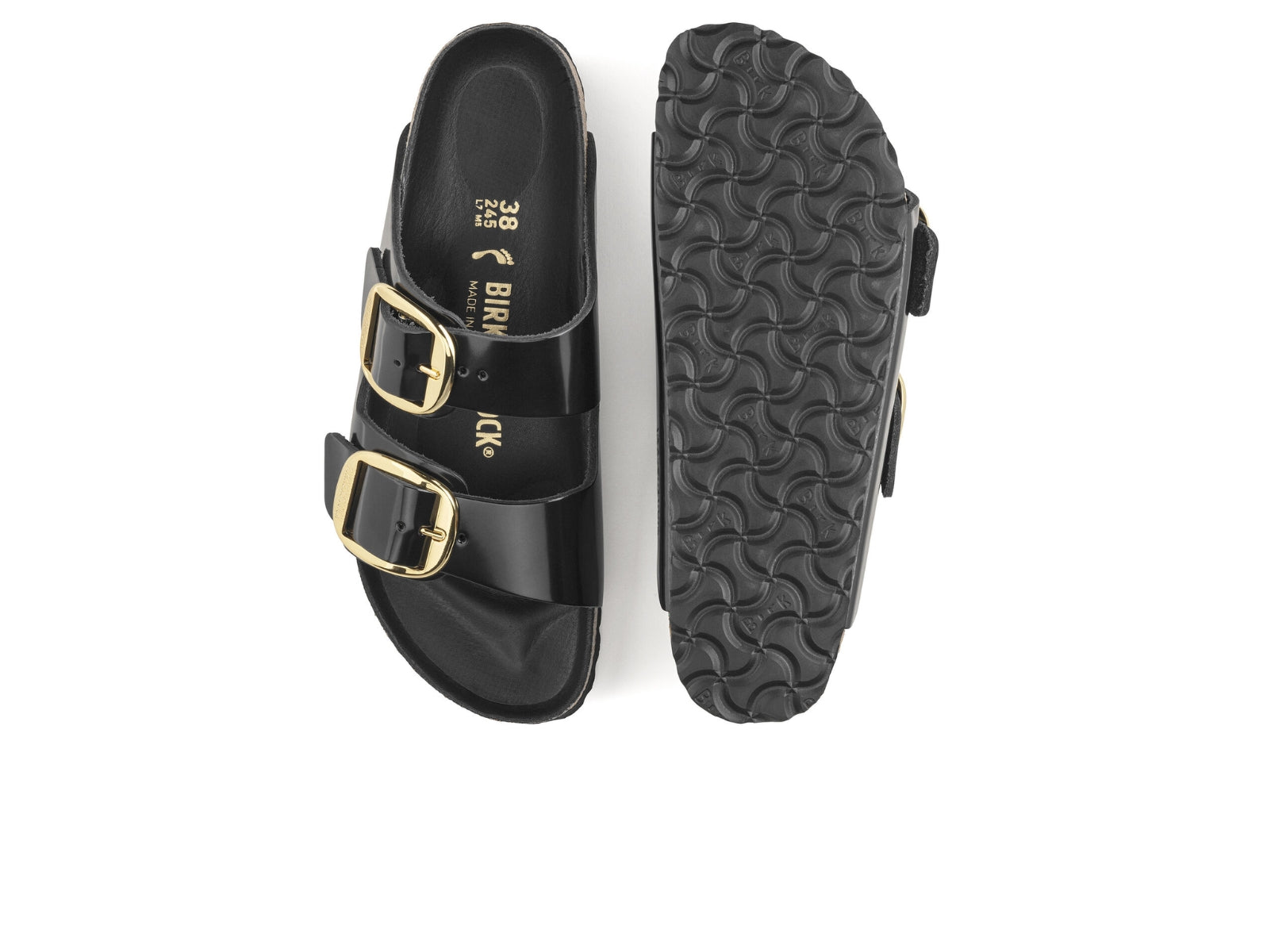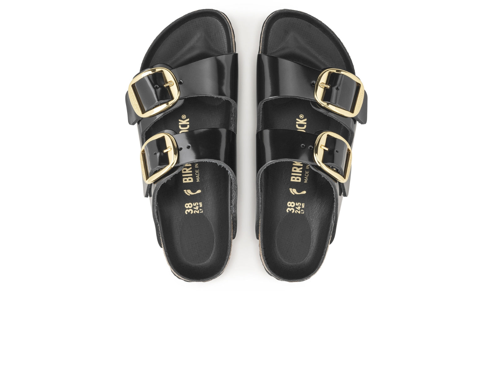 Elevate your style with the Birkenstock Arizona Big Buckle 1021476. Made of high-quality natural leather with a high shine finish, its legendary two-strap design and amplified buckle accent create a bold yet minimalist look. With an individually adjustable metal pin buckle and a semi-exquisite footbed lined with soft piumato leather, its effortless fit and cork footbed promise exceptional comfort. A fashion staple for any wardrobe.