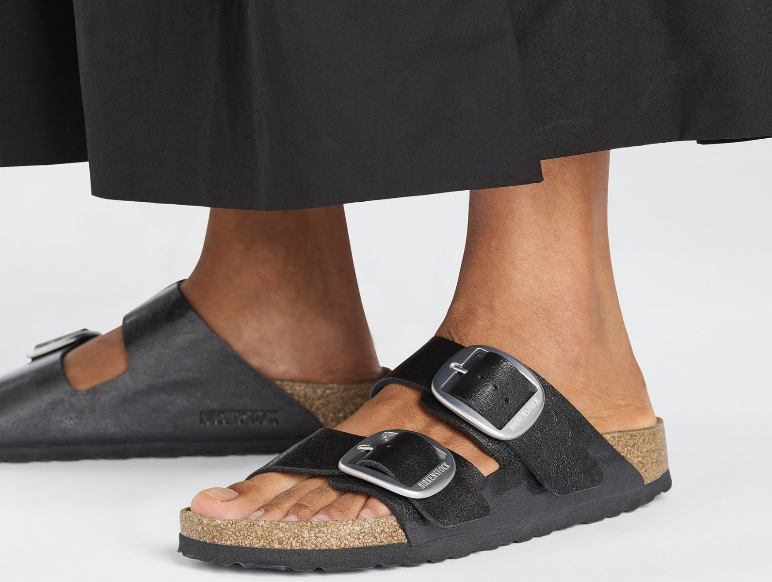 The Birkenstock Arizona Big Buckle 1027344 Standard is a must-have classic with a timeless design. The skin-friendly, hard-wearing synthetic material Birko-Flor® upper has a subtle silky sheen for a luxurious look. The anatomically shaped cork-latex footbed provides optimal support, while the adjustable straps with large metal pin buckles ensure a secure fit. Complete with a flexible and lightweight EVA sole, these sandals are perfect for everyday wear.