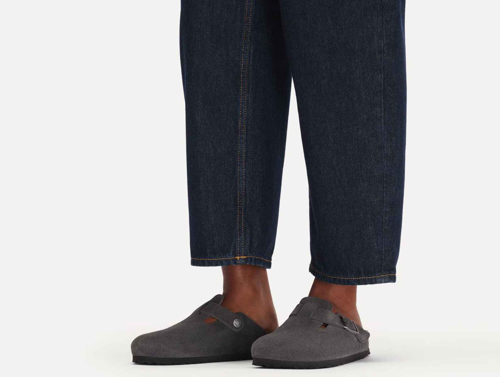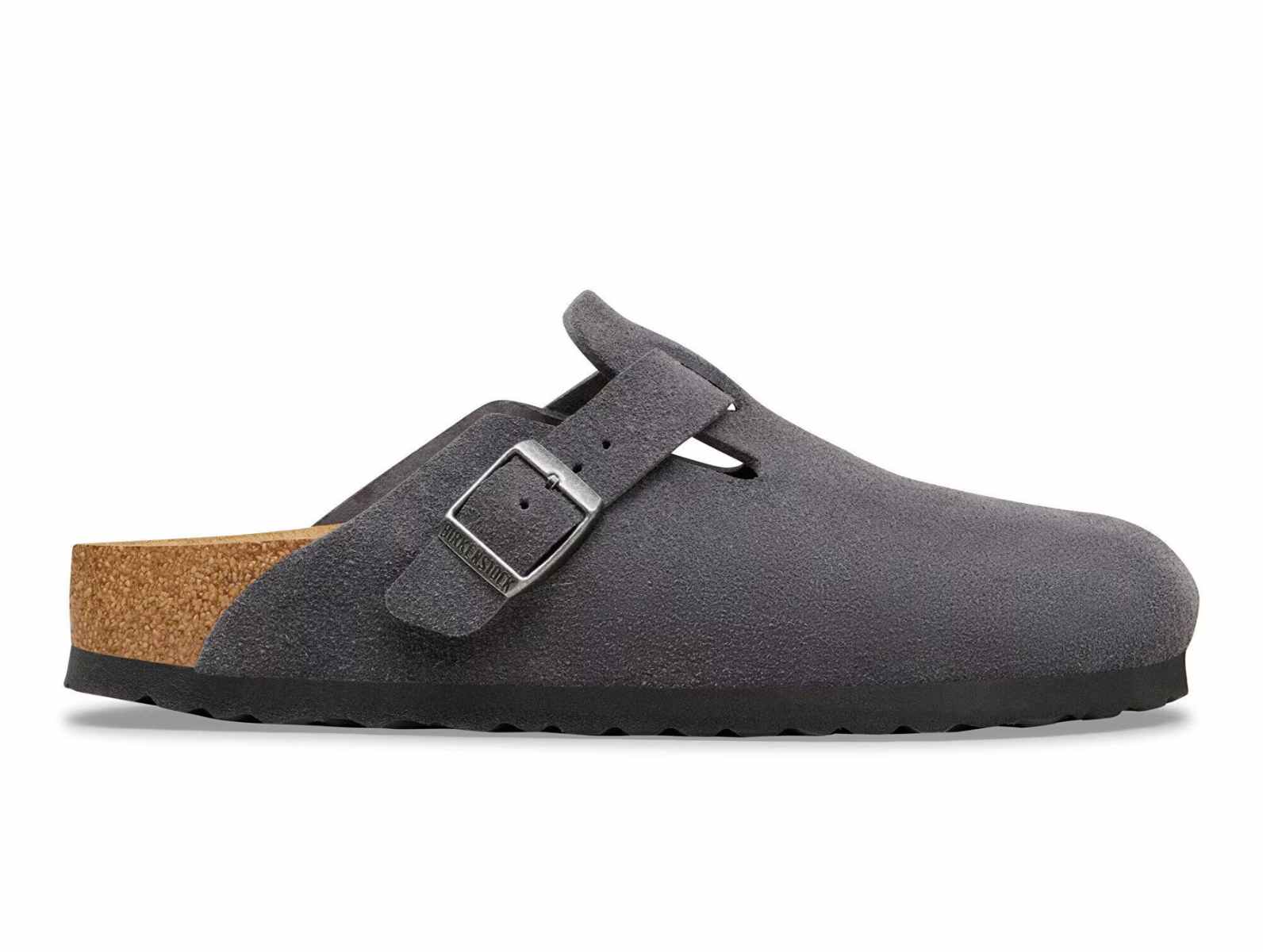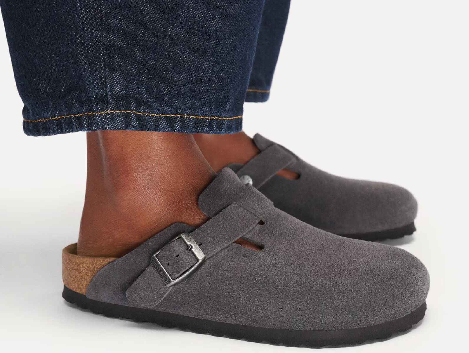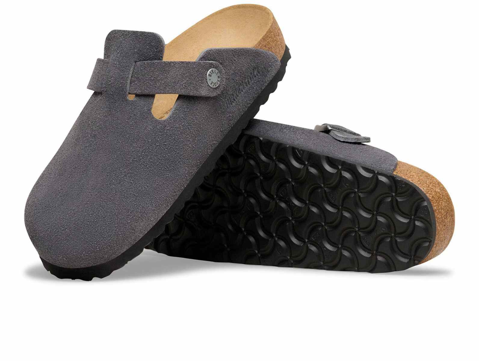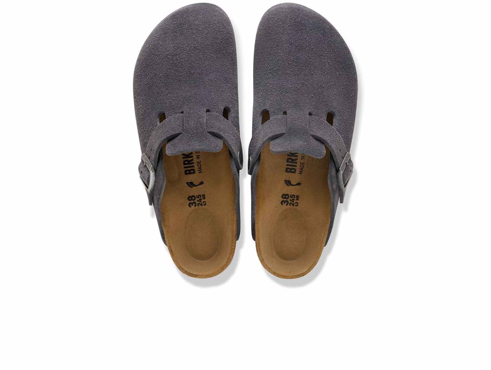 A veritable classic for every season, the Birkenstock Boston in Charcoal Suede has achieved legendary status through its sophisticated, minimalist design. This year-round staple is crafted from especially soft, high-quality suede that hugs the foot like a second skin, offering a natural and relaxed aesthetic.
