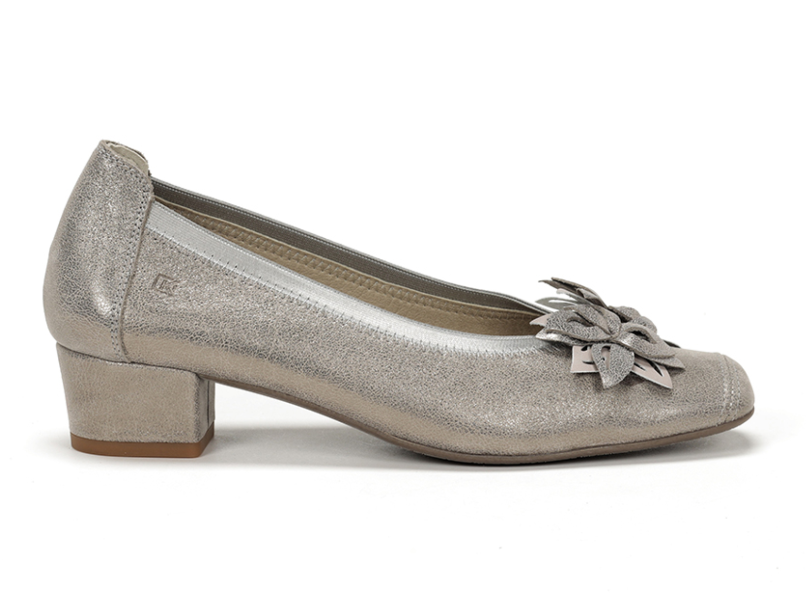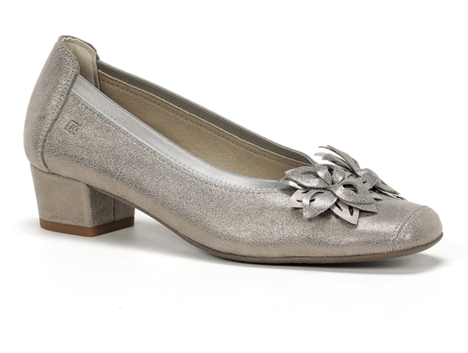 Step out in style with the Dorking by Fluchos Pamel D 9095 in Steel Silver. The Dorking Pamel D 9095 in Steel Silver combines subtle shimmer and floral detailing for a chic, feminine look, perfect for any occasion. Available at Walsh Brothers Shoes, Tralee.