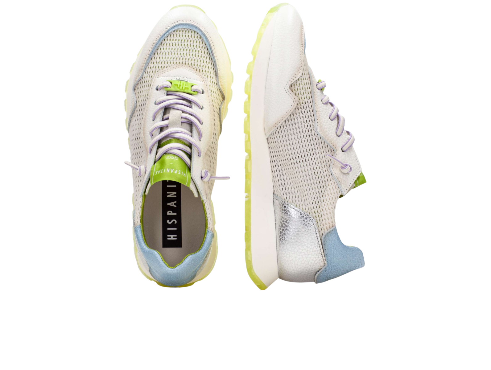 Hispanitas CHV264825 Oregon in White Silver Sky is a stylish and comfortable ladies’ athletic shoe. The Hispanitas CHV264825 features breathable leather and mesh, elastic laces, and a removable anatomical insole for all-day comfort, available at Walsh Brothers Shoes, Tralee.