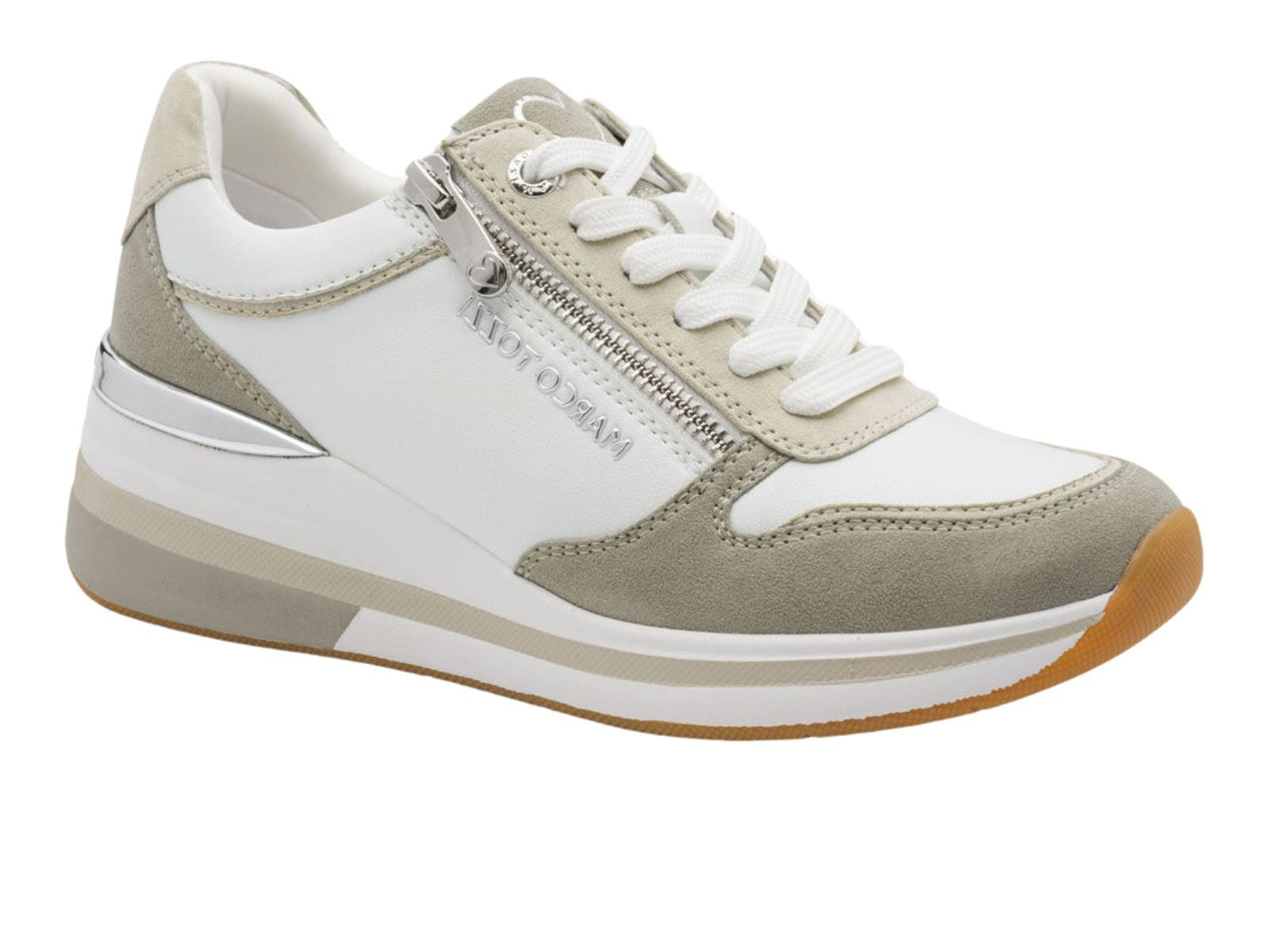 Refresh your footwear rotation with the Marco Tozzi White Matcha Sneaker, a crisp and contemporary trainer that perfectly captures the spirit of spring. Blending a clean white base with refreshing matcha green accents and soft suede-effect overlays, this sneaker is designed for the woman who seeks a sporty, trend-led aesthetic without compromising on everyday comfort.
