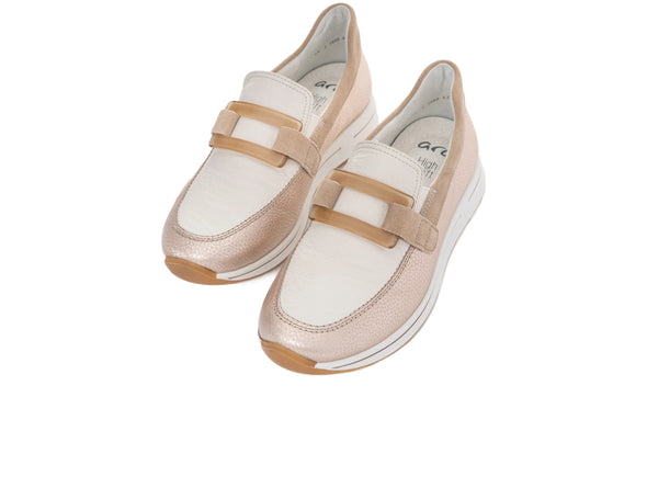 Embrace effortless elegance with the Ara 12-24822-09 Osaka loafers in Metallic Sand Cream. Combining a sporty, lightweight design with timeless sophistication, these slip-on shoes are crafted from exceptionally soft leather for a supple, comfortable fit. A decorative clasp over the instep adds a refined touch, while Ara’s innovative HighSoft technology ensures all-day comfort by reducing foot strain.