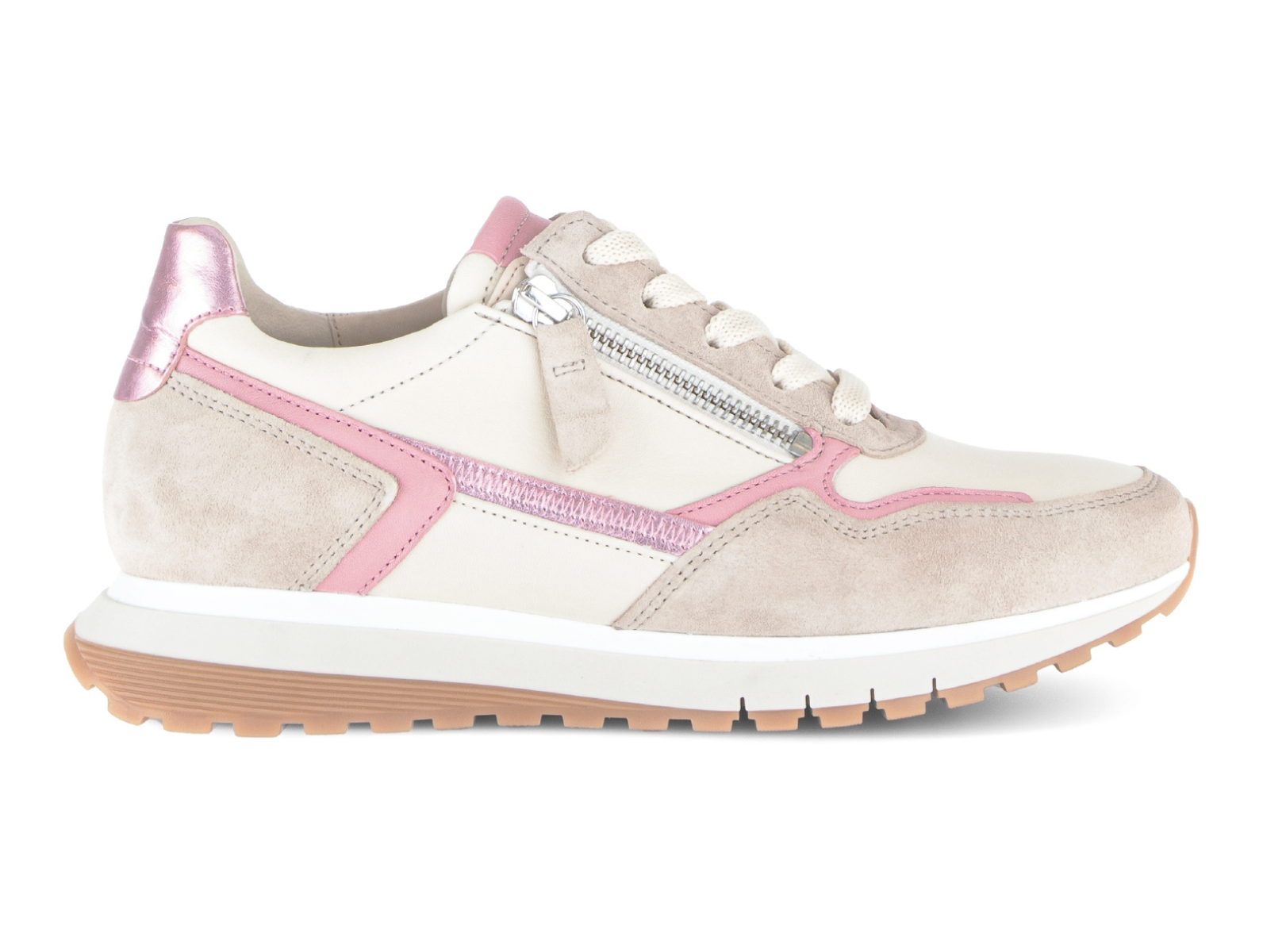 The Gabor 86.378.20 Hollywell in Pink Beige is a stylish ladies’ sneaker from the Gabor Comfort range, designed for effortless everyday wear with enhanced support and flexibility. Combining a modern colour-blocked look with easy on-off zip access, the Gabor 86.378.20 Hollywell in Pink Beige delivers wide-fit comfort and lightweight freedom of movement.