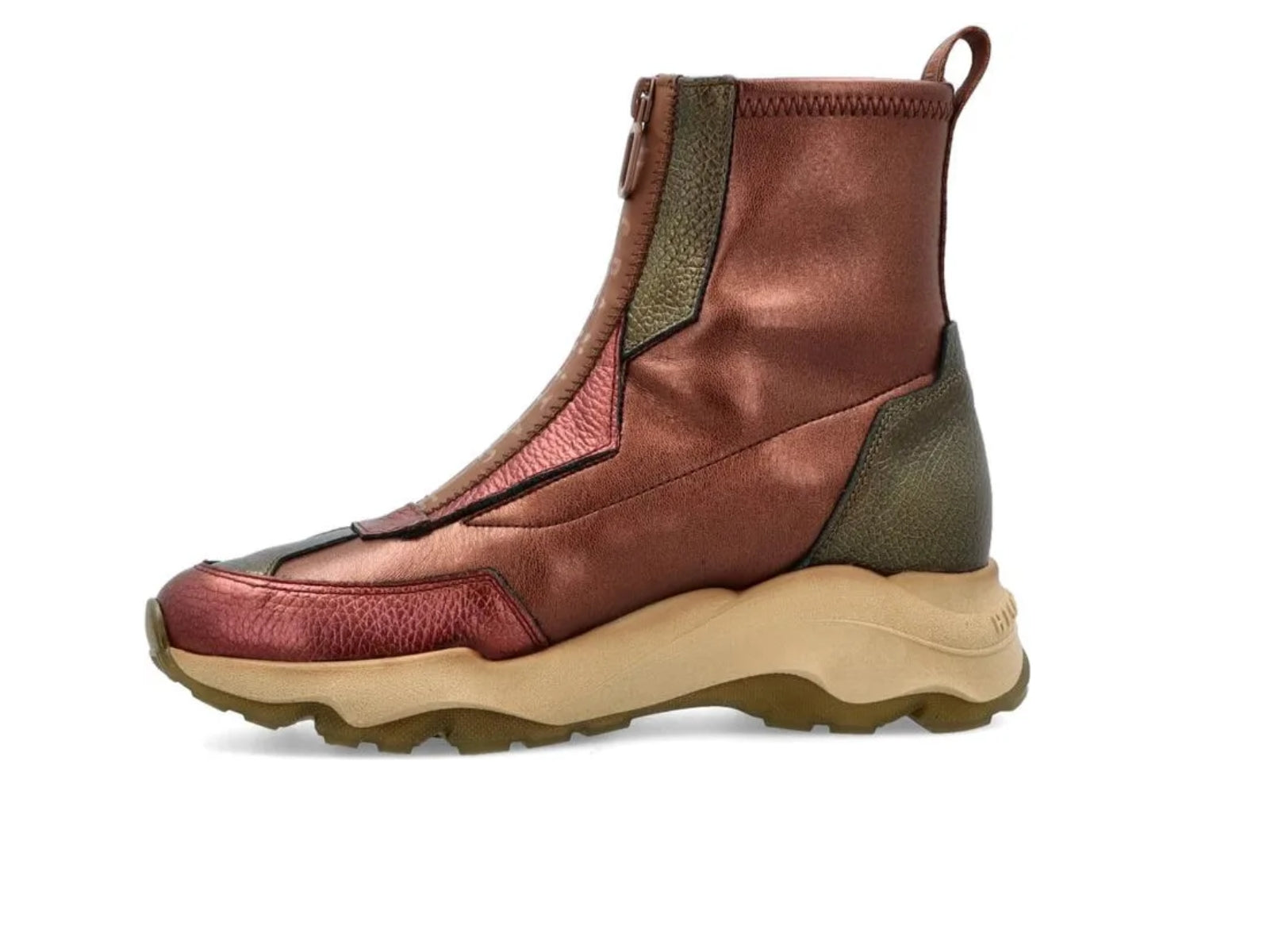 Add bold sophistication to your wardrobe with the Hispanitas CHI254302 in Army Wine. Crafted from premium leather, this stylish ladies’ ankle boot combines a modern chunky sole with a sleek front zip closure and pull tab for effortless wear. The Hispanitas CHI254302 features a soft leather lining and comfortable leather footbed, offering both luxury and everyday practicality.