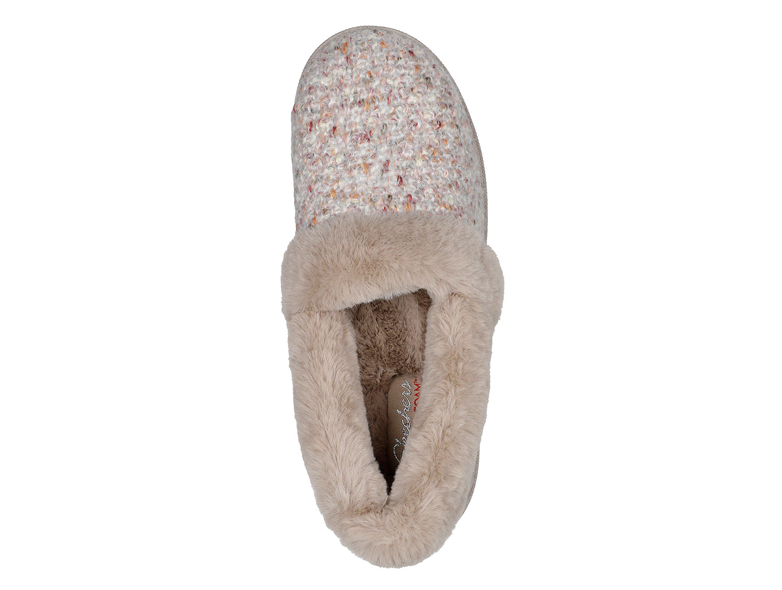 Your feet will be campfire cozy in the Skechers 167629 Lazy Sundaze in Taupe Multi. Crafted with 100% vegan material this is a casual, comfortable slipper featuring a mottled knit upper and an oh so soft faux fur lining! The Memory Foam foot bed brings additional comfort. This is an easy to wear slipper and being a slip-on style it allows for an easy on off. Shock-absorbing low profile midsole adds stability and confidence. The heel gives 1.5cm of height. Here at Walsh Brothers Shoes, we think the Skechers 167629 in Taupe Multi are ideal for Lazy Sundaze!