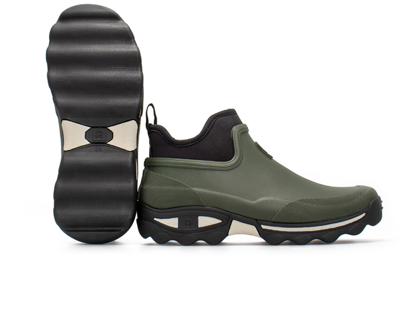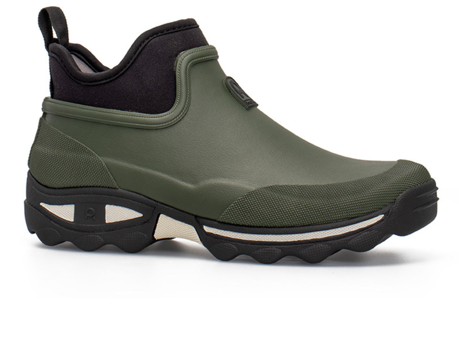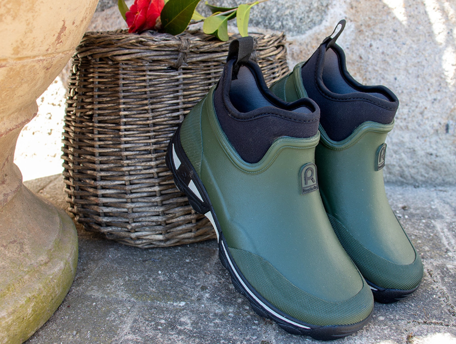 Tackle the outdoors in any weather with the Rouchette Ladies Bottillon, a khaki natural rubber ankle boot designed for practicality, comfort, and durability.