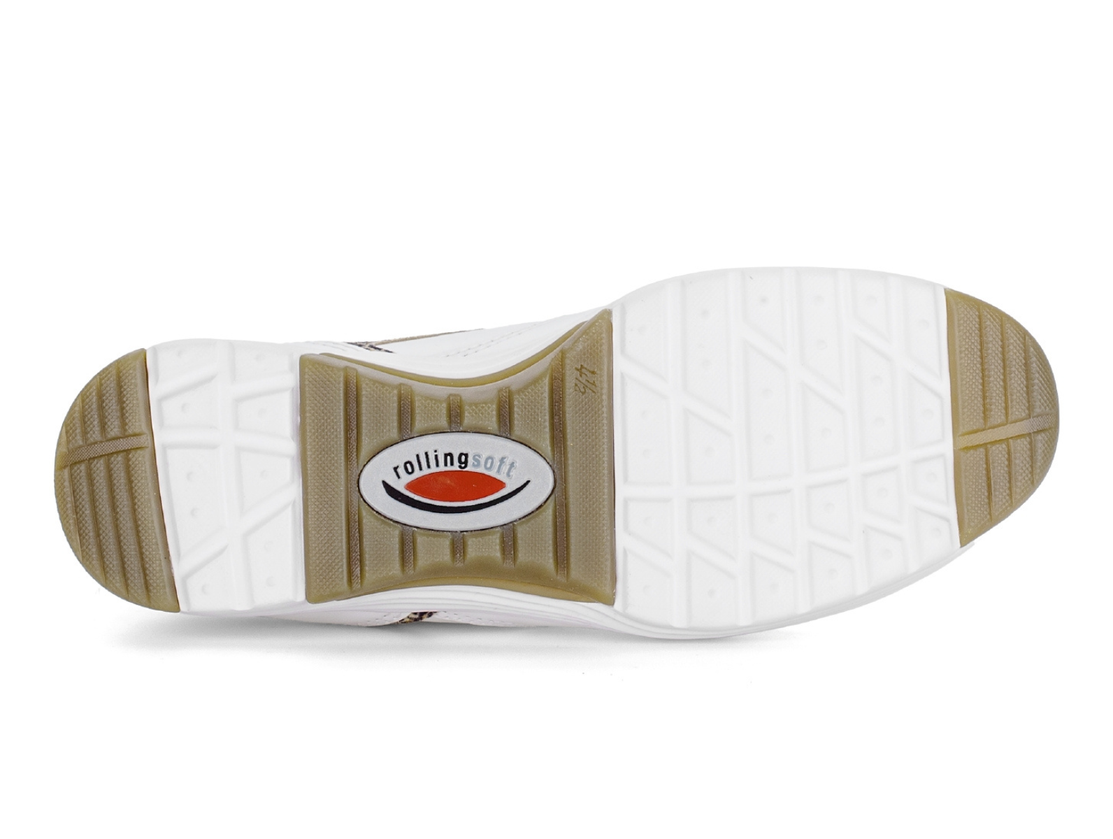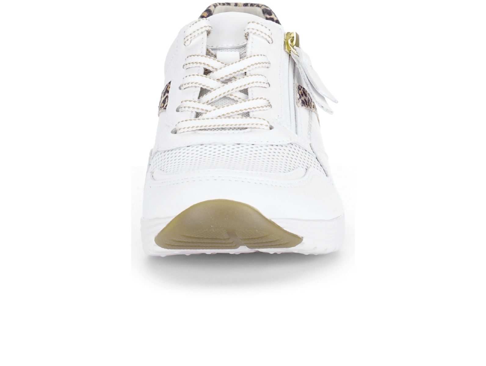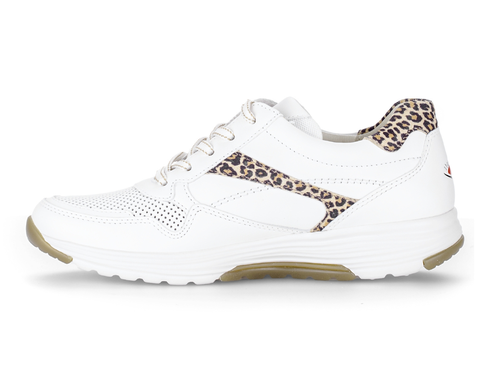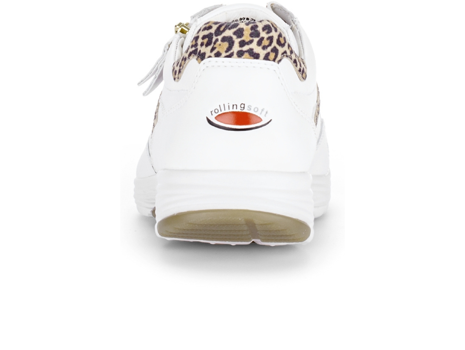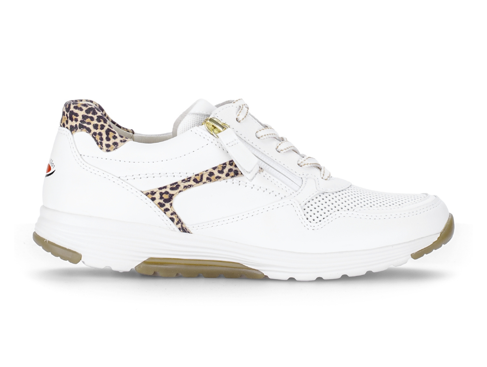 The Gabor Rolling Soft 86.978.25 Haley in White Tan combines sporty style with everyday comfort. The Gabor Rolling Soft 86.978.25 Haley in White Tan features a white and tan colour mix with subtle leopard print detailing, offering guided rolling motion and improved lateral stability, perfect for all-day wear from Walsh Brothers Shoes, Tralee.