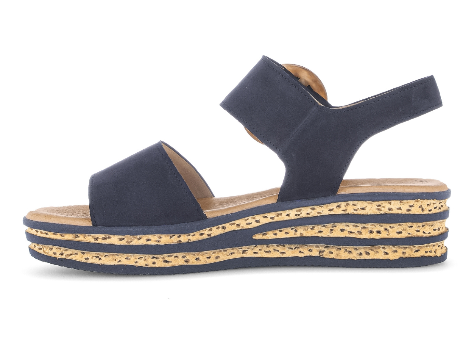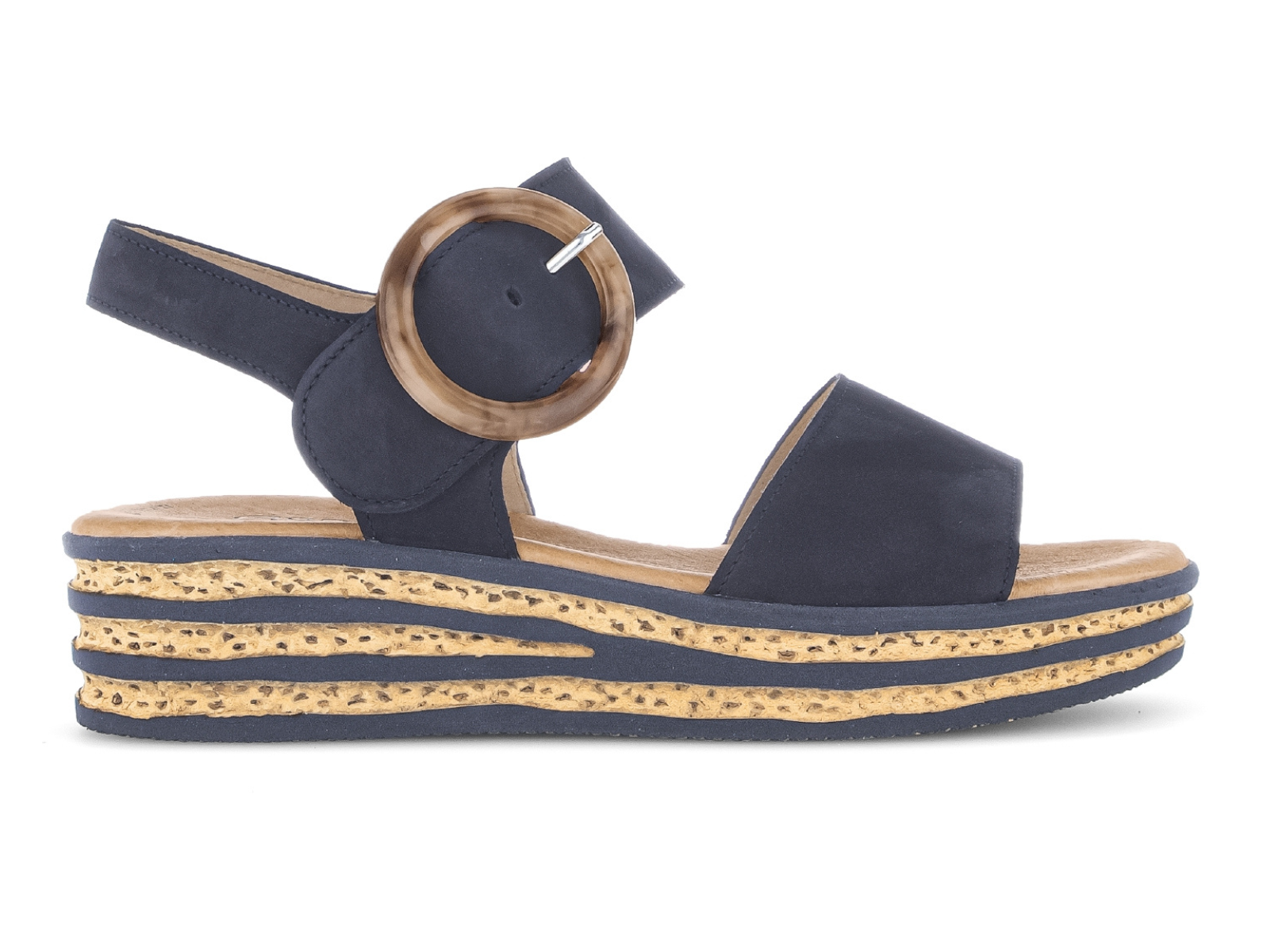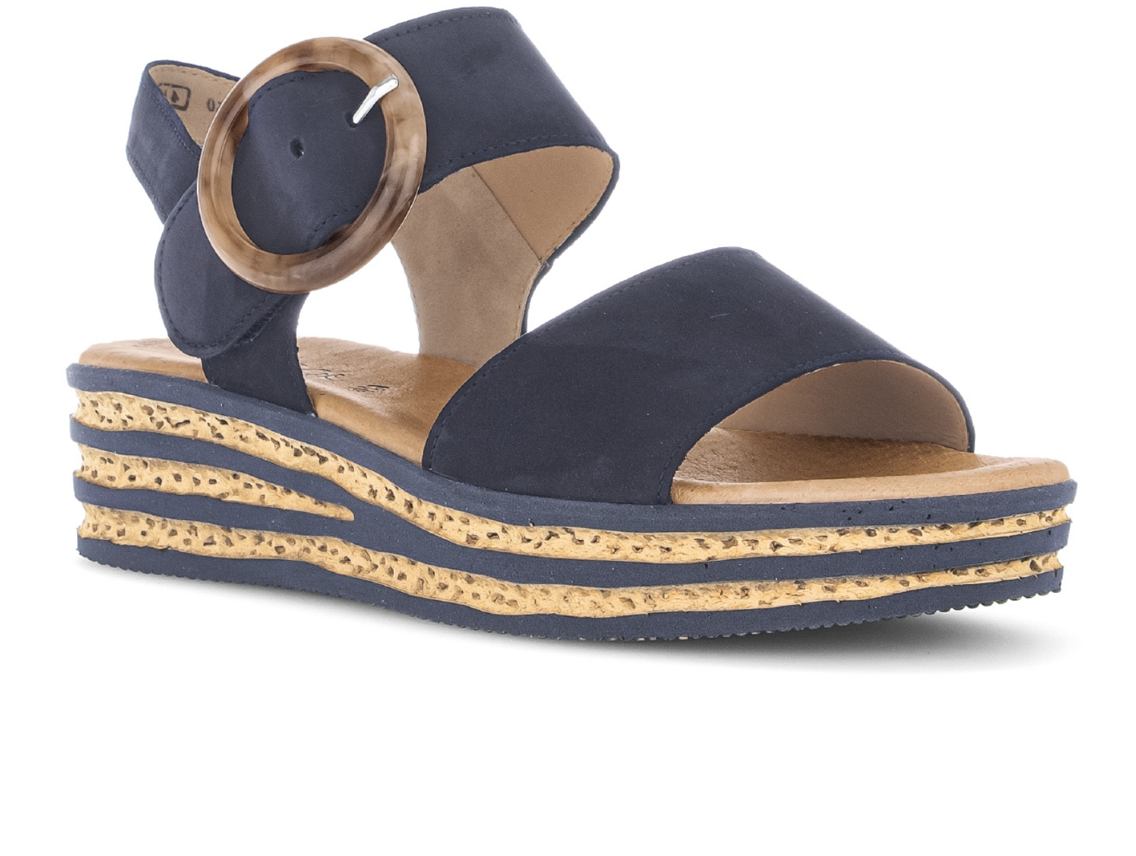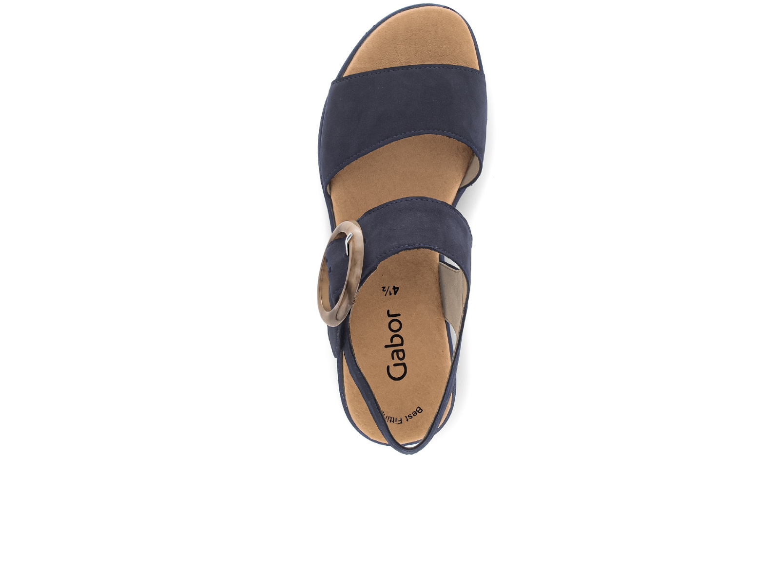 The Gabor 84.550.16 Andre in Navy is a versatile ladies’ casual sandal designed for everyday comfort with a refined metallic finish. From the Gabor Best Fitting Collection, the Gabor 84.550.16 offers added width, a wider tread area, and a supportive 4.5 cm heel for effortless all-day wear.