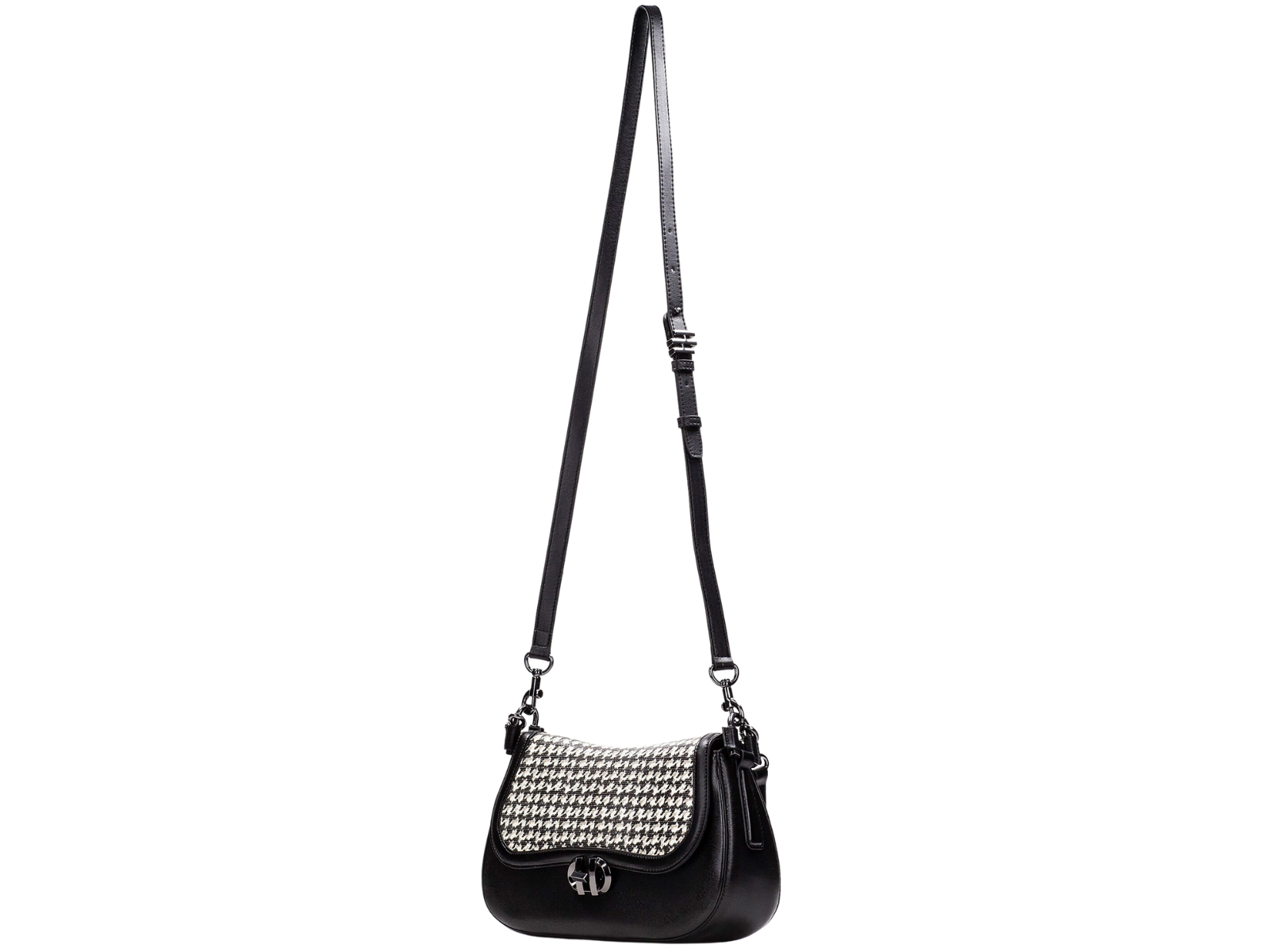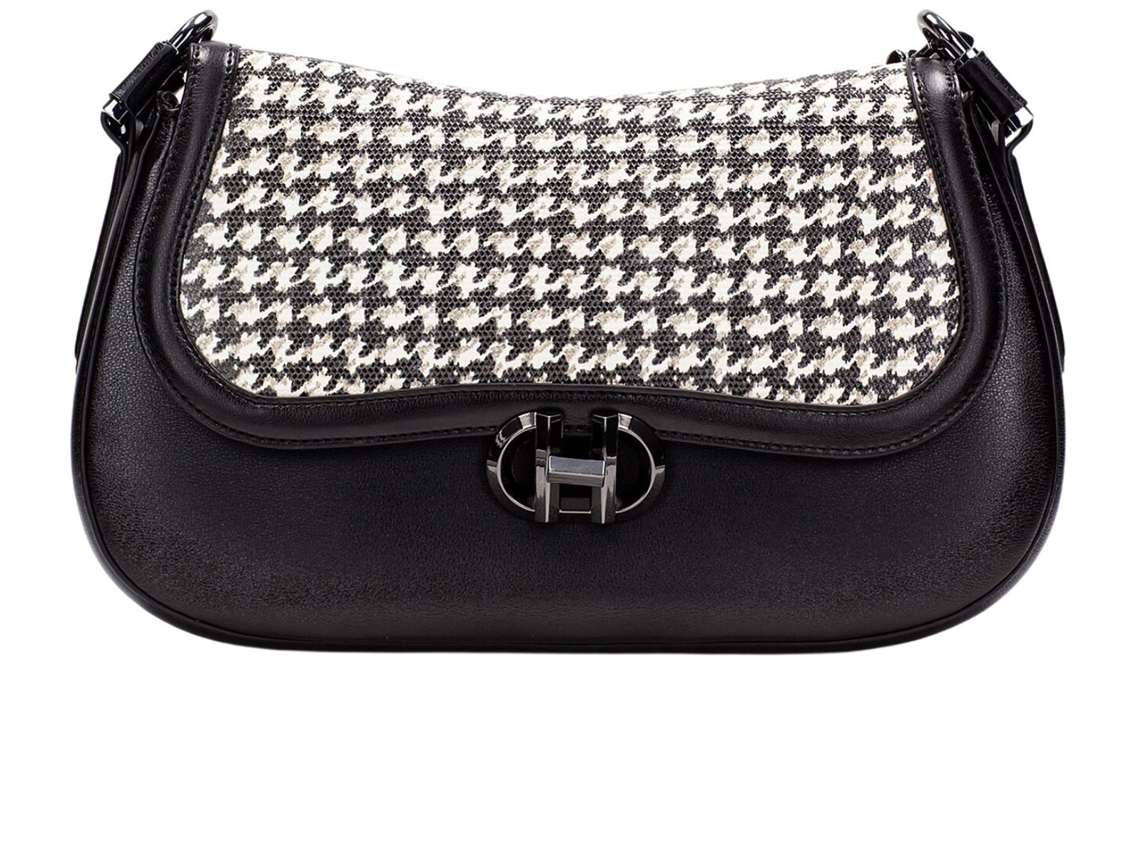 Elevate your everyday style with the Hispanitas BI254150 Hand Bag in Black / White. This elegant ladies’ half-moon bag features a chic houndstooth-print flap closure and an extendable strap, combining fashion and functionality. Crafted from high-quality PU with a branded cotton lining, the Hispanitas BI254150 offers versatile wear for both casual and dressy occasions.